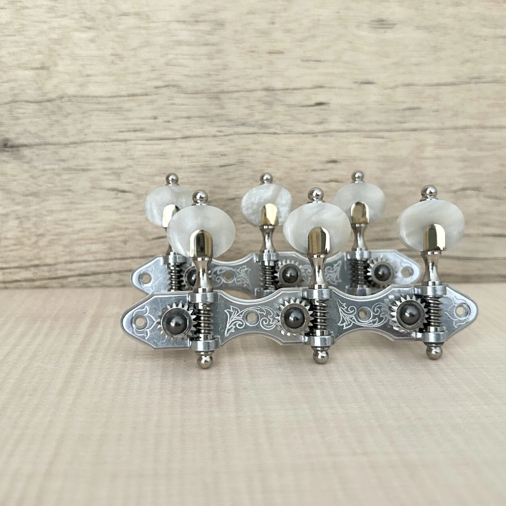 INFORMAÇÕES GERAIS: Formato de venda: Kit Marca: VS Tuners Modelo: Violão cordas de aço, Violão cordas de Nylon, Violão clássico, violão seis cordas, violão 3+3, violão nylon, violão aço Formato de venda: Kit Unidades por kit: 02 Orientação da tarraxa: Direita/Esquerda (3+3) Garantia: 24 meses