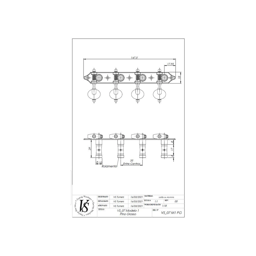 Descrição Tarraxas de alta precisão são o principal produto da VS Tunes, desenvolvidas com um padrão de qualidade superior, garantindo afinação estável e durabilidade. A VS se destaca por fornecer componentes de alto desempenho para apaixonado por música e luthiers.