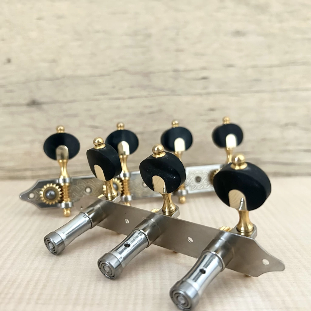 INFORMAÇÕES GERAIS: Formato de venda: Kit Marca: VS Tuners Modelo: Violão cordas de aço, Violão cordas de Nylon, Violão clássico, violão seis cordas, violão 3+4, violão nylon, violão aço Formato de venda: Kit Unidades por kit: 02 Orientação da tarraxa: Direita/Esquerda (3+4) Garantia: 24 meses
